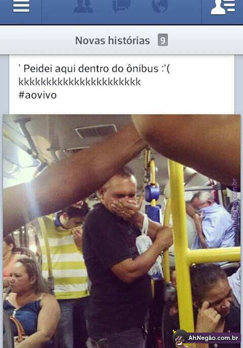 Notem que só a mulher de azul é imune ao fedor de fezes gasosas. O homem de preto teve morte pulmonar esta manhã, mas passa bem e já respira sem ajuda de aparelhos. O cobrador nunca mais foi visto.